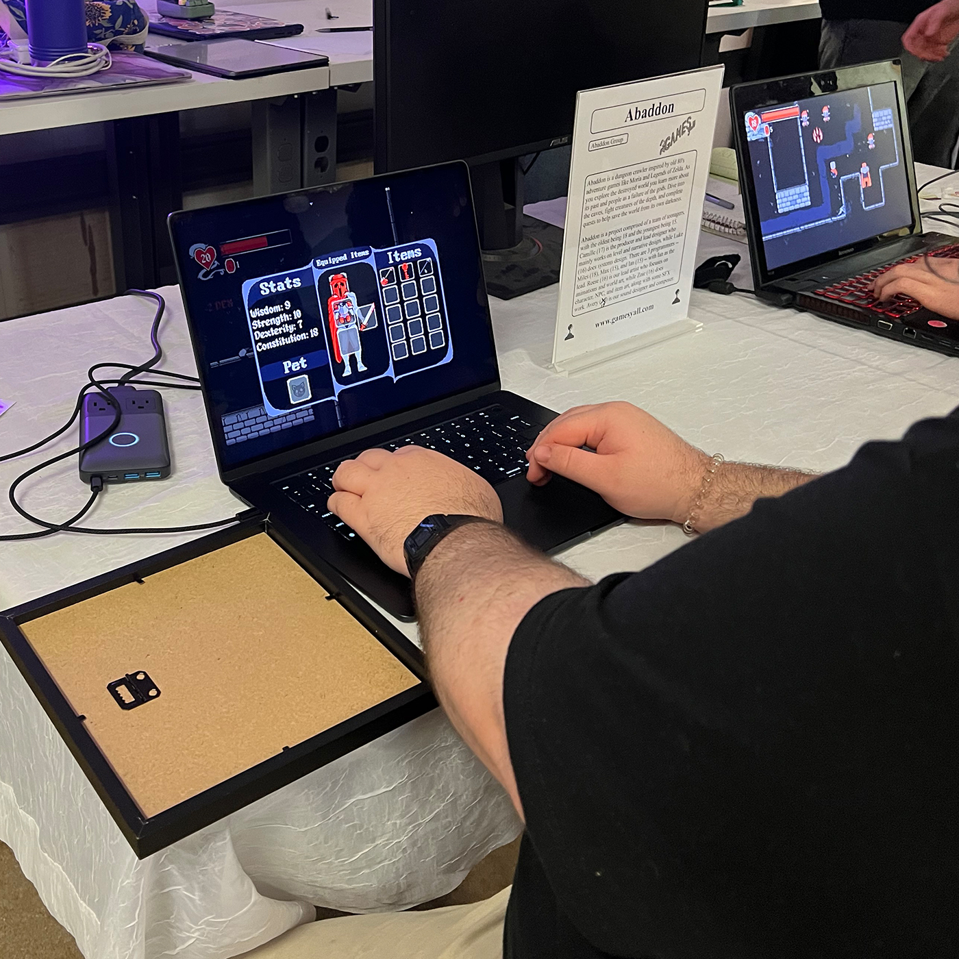 Abaddon is a project comprised of a team of teenagers, with the oldest being 18 and the youngest being 15. Camille (17) is the producer and lead designer who mainly works on level and narrative design, while Luke (16) does systems design. There are 3 programmers – Miles (18), Max (15), and Ian (15) – with Ian as the lead. Reese (16) is our lead artist who focuses on animations and world art, while Zoie (16) does character, NPC, and item art, along with some SFX work. Avery (16) is our sound designer and composer.